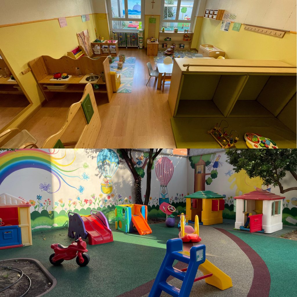 Anche all’esterno, il giardino è ben curato e predisposto all’accoglienza dei bambini. è uno spazio prezioso di esplorazione e di movimento.